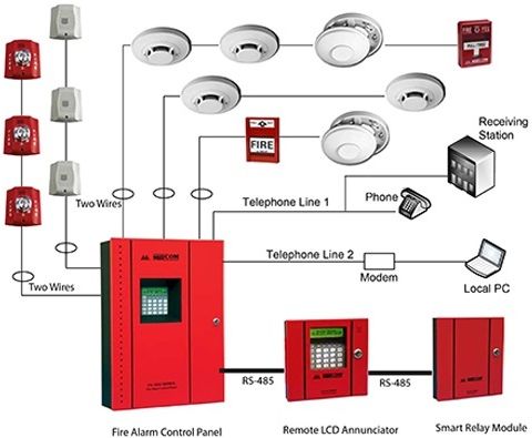 В местах общего пользования проектирование систем пожарной сигнализации подразумевает наличие различных типов извещателей - дымовых, тепловых, комбинированных и устройства оповещения для экстренной эвакуации. Так например, хорошо нам знакомые залы для "курящих" оборудуются тепловыми, а залы для "некурящих" дымовыми пожарными извещателями. Некоторые служебные помещения оборудуются комбинированными извещателями, если преобладающий фактор пожара не возможно определить этапе проектирования. Такое случается, когда владелец планирует через некоторое время работы заведения сменить назначение помещения.